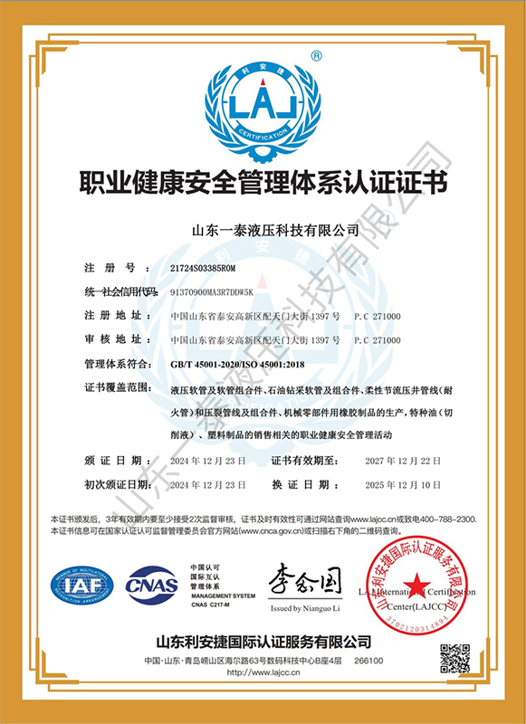 山東一泰液壓科技有限公司,坐落于山東省泰安市國家高新技術產業開發區配天門大街1397號,總占地面積6萬6千多平方米,總建筑面積4萬多平方米。公司注冊資金7500萬元,資產值3億元。公司始終專注于超高壓石油鉆探軟管、柔性節流壓井軟管、井控高壓耐火軟管總成、高端機械軟管、以及礦用液壓管體等配套產品的研發和生產。產品廣泛用于陸地和海洋石油鉆井、勘探、開采、輸送等領域;同時還為軍用系列、大型船舶系列提供了優質產品的供應保障和信任服務。